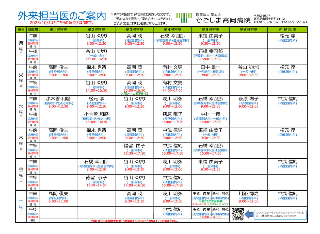 診療予約 099-226-1370
