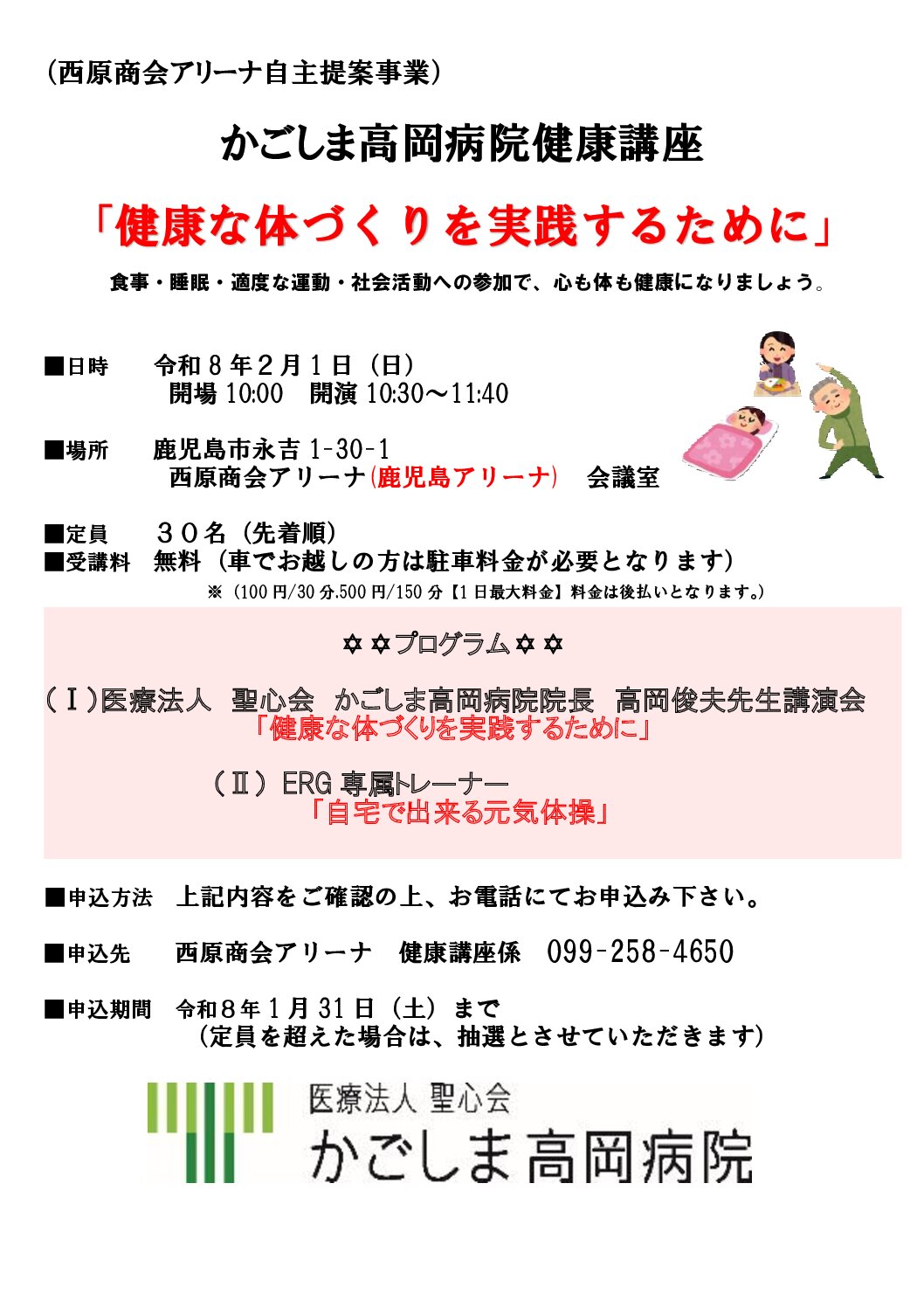 この度「健康な体づくりを実践するために」をテーマとし、健康講座を開催する運びとなりました。